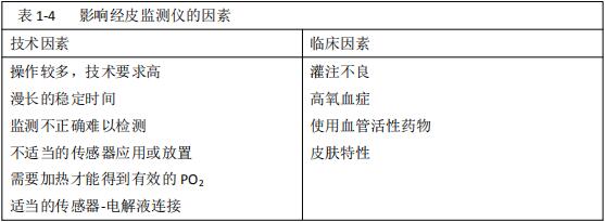 經皮監測儀的監測受眾多因素的影響,主要包括兩方面的因素:技術因素和臨床因素(表1-4)。