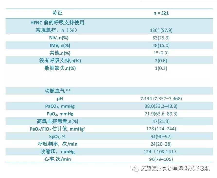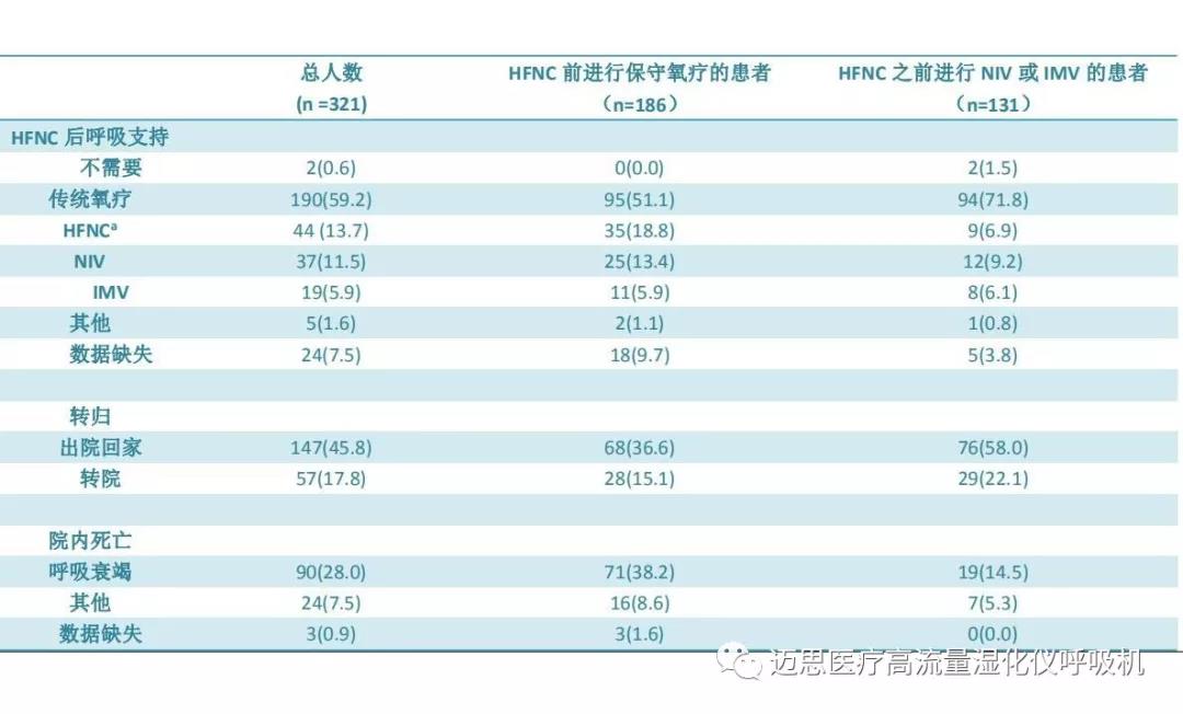 d在進(jìn)行HFNC前,120名患者接受了傳統(tǒng)氧療,其中53名為無創(chuàng)通氣NIV,45名為有創(chuàng)機(jī)械通氣IMV