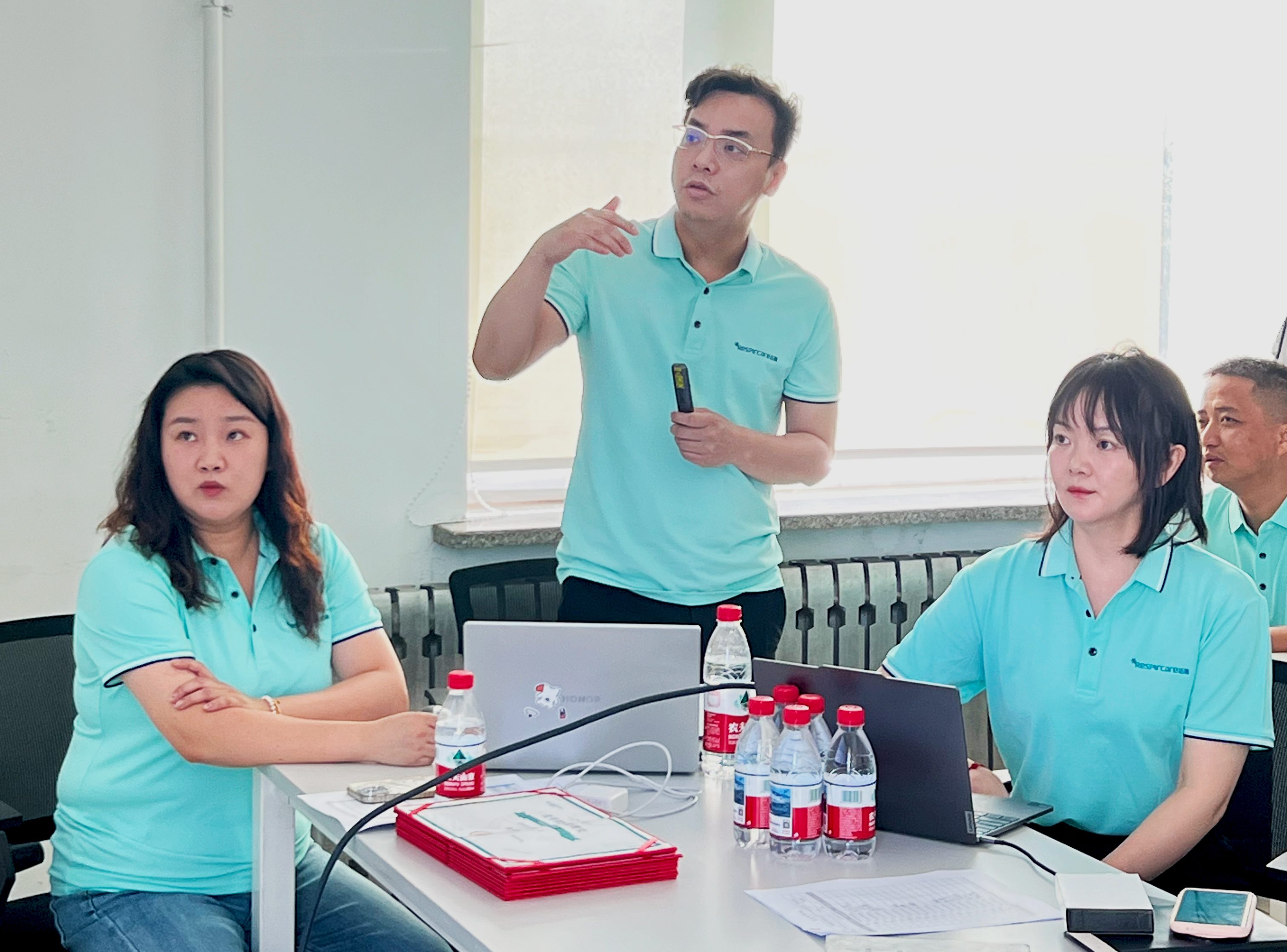 市場部對邁思主要系列產品濕化器、高流量呼吸濕化治療儀、家用治療型呼吸機產品以及即將上市的新產品進行了培訓。